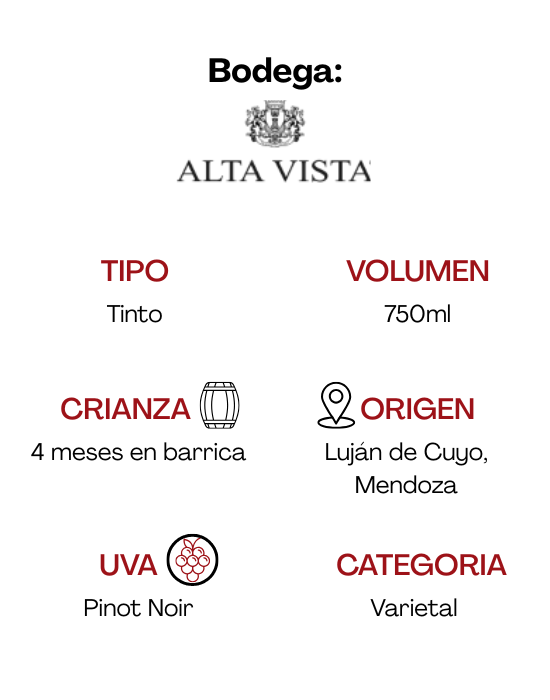 Notas de cata: Presenta un color rojo rubí brillante. En nariz, se perciben notas de frutas frescas como frutillas y grosellas, además de aromas a especias dulces como canela y clavo. En boca, es un vino complejo y equilibrado, con una acidez y estructura firmes. También se mencionan notas como hebras de té negro y toques herbáceos.