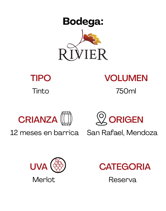 El Jean Rivier Reserva Merlot es un vino varietal 100% Merlot.