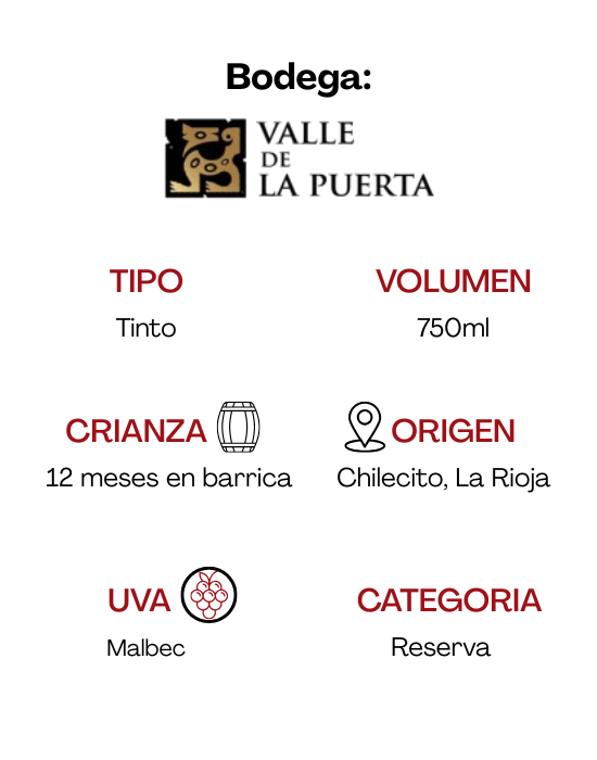 Notas de cata: Color rojo intenso y brillante con tonos violáceos. En nariz, se perciben aromas de frutos rojos y negros maduros con notas tostadas que provienen de su paso por el roble, así como hierbas y dejos balsámicos. En boca es un vino complejo, con buen cuerpo y estructura, taninos firmes y redondos, y un final largo y persistente.
